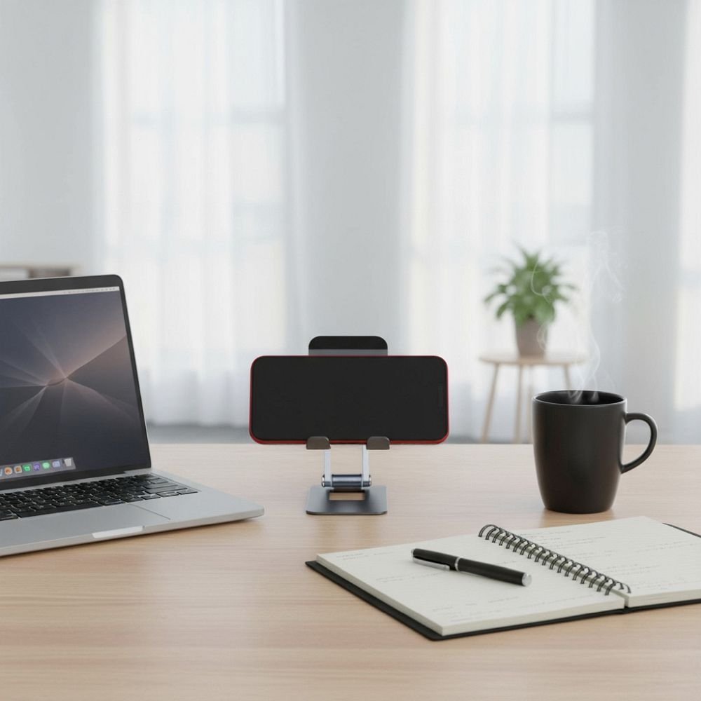 Díky skládací konstrukci se držák snadno skladuje a přepravuje – vejde se do kapsy, batohu nebo tašky na notebook. Je to perfektní stolní doplněk pro mobilní pracovní stanici.
